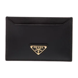 Lushentic Bag Small Card Holder ; Black Vitello Leather Gold Hardware