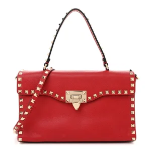 Lushentic Medium Rockstud Bag in Red Pebbled Calfskin Leather