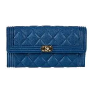 Lushentic Chanel Medium Interlocking CC Logo Continental Wallet Blue Caviar Leather Gold Hardware