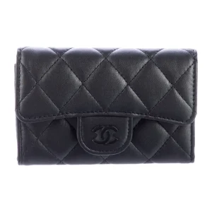 Lushentic Chanel Small Card Holder Flap Trifold Wallet Black Quilted Leather