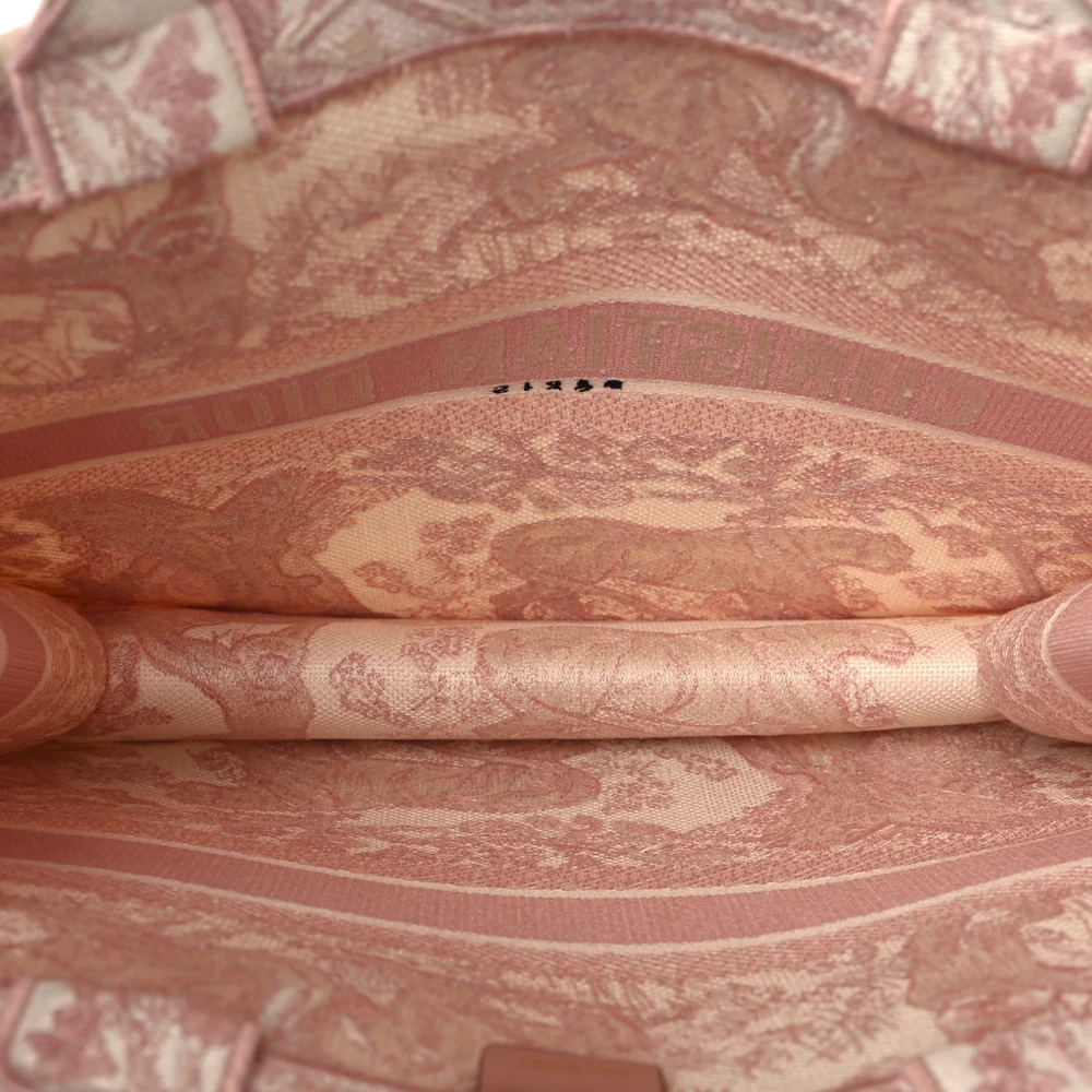 This Dior Large Toile De Jouy Book Tote in Pink Embroidered Canvas is a standout statement piece. The intricate embroidery reflects Dior’s heritage and craftsmanship. Spacious and durable, it’s perfect for work, travel, or leisure. Lightweight canvas ensures practicality without compromising on style. A bold and artistic addition to any wardrobe. Elevate your daily essentials with this iconic tote.