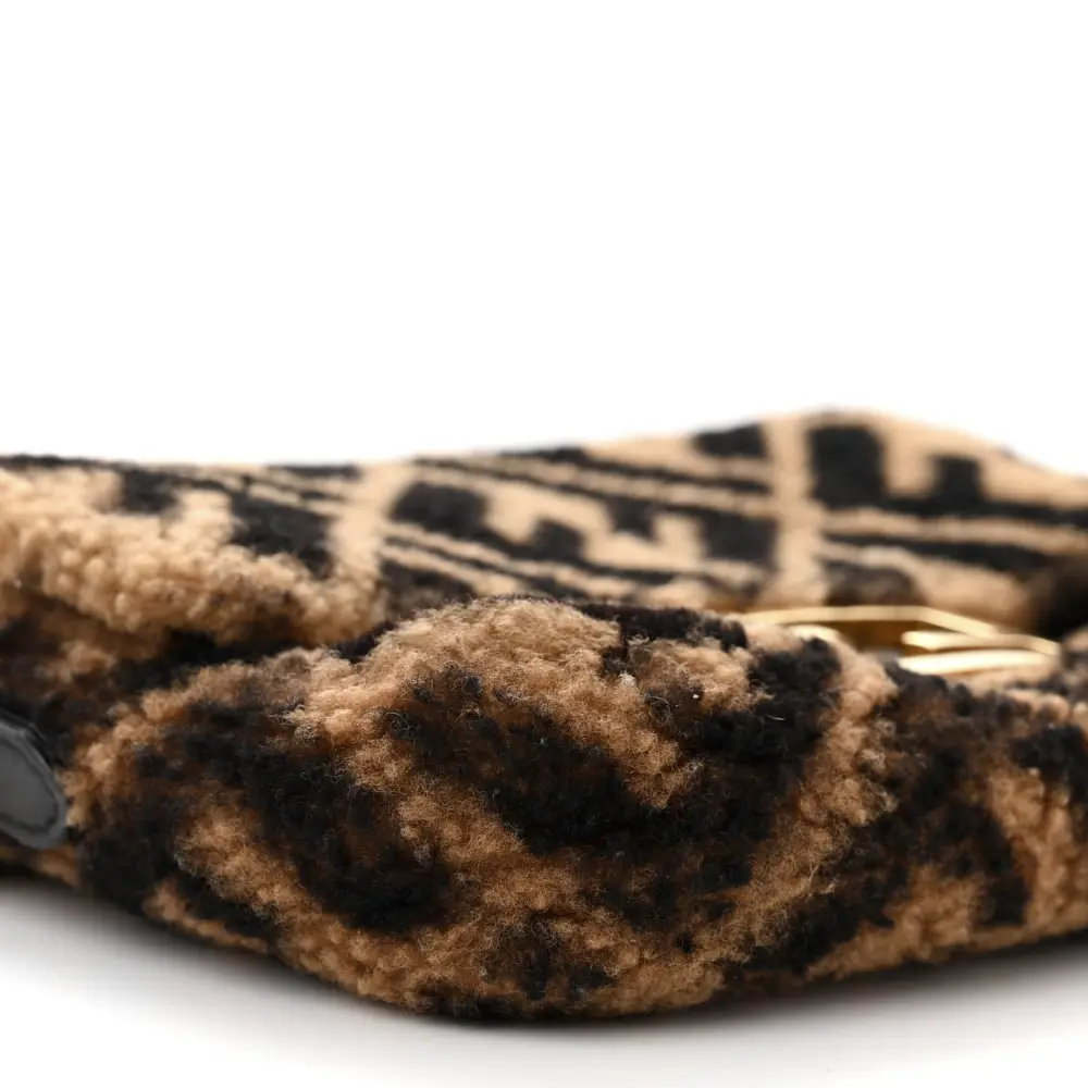 This Fendi Mini FF 1974 Baguette in Tobacco/Black Macro Shearling exudes cozy sophistication. Gold hardware complements its textured design. Compact size makes it practical for everyday use. Perfect for fall or winter ensembles. Adds warmth and elegance to your look. A charming addition to any wardrobe.