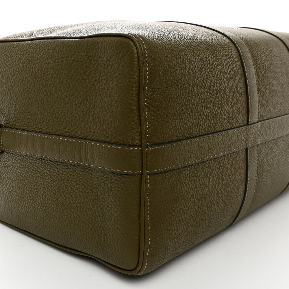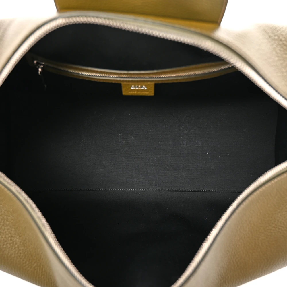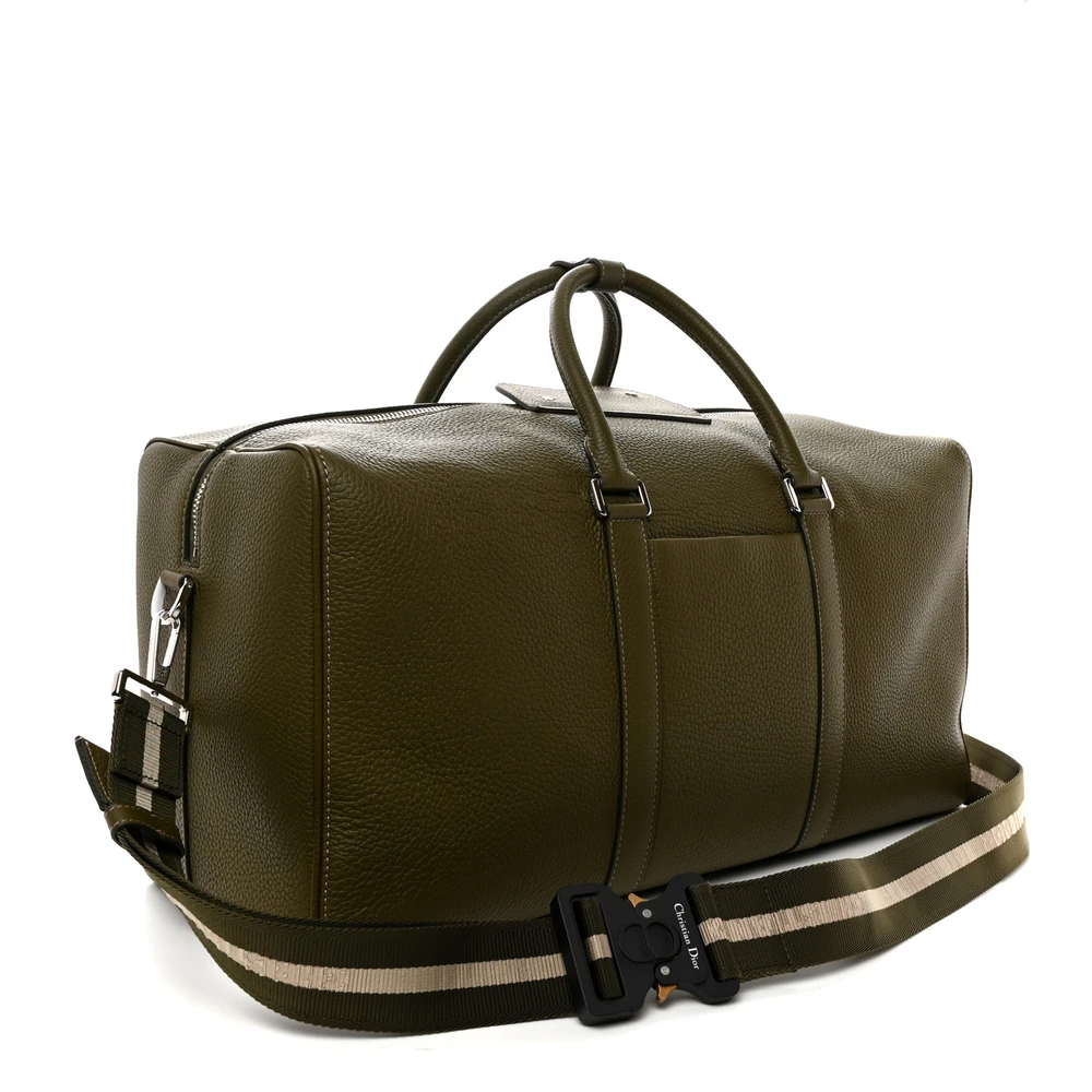 This Dior Extra Large Lingot 50 Bag in Green Calfskin Leather exudes functionality and style. The spacious design makes it perfect for travel or work. Silver hardware adds a modern touch to its sleek silhouette. Its luxurious leather construction ensures durability and sophistication. A versatile addition for those who appreciate refined utility.
