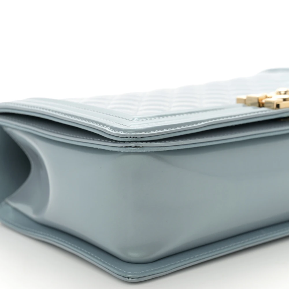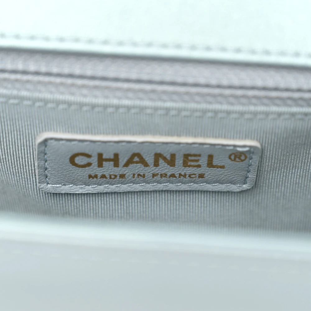 This Chanel Boy Flap New Medium in Light Blue Quilted Glazed Calfskin Leather with Gold Hardware exudes youthful elegance. The light blue hue and glazed calfskin leather create a vibrant yet polished look. Gold hardware highlights its sophisticated design, making it suitable for both casual and formal settings. Spacious and practical, it offers ample room for essentials while maintaining a sleek profile. The iconic Boy clasp and chain strap enhance its timeless appeal. A standout addition to any Chanel collectsion.