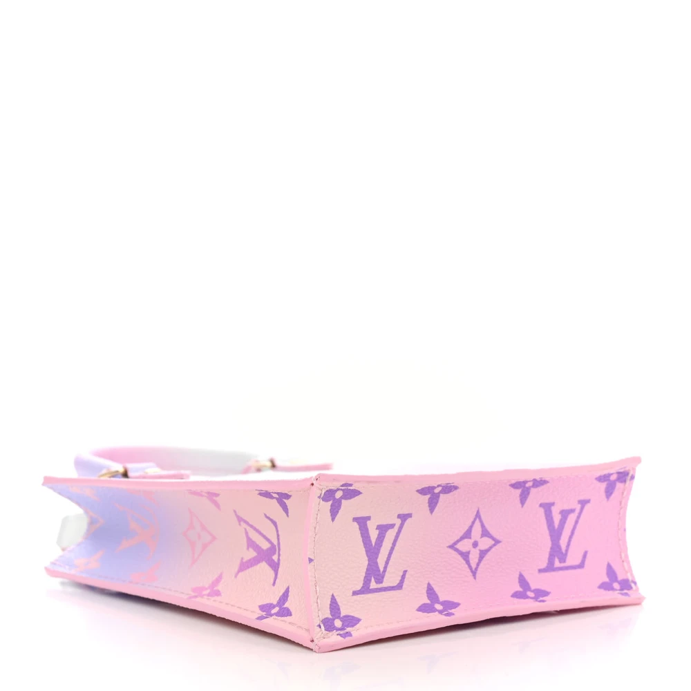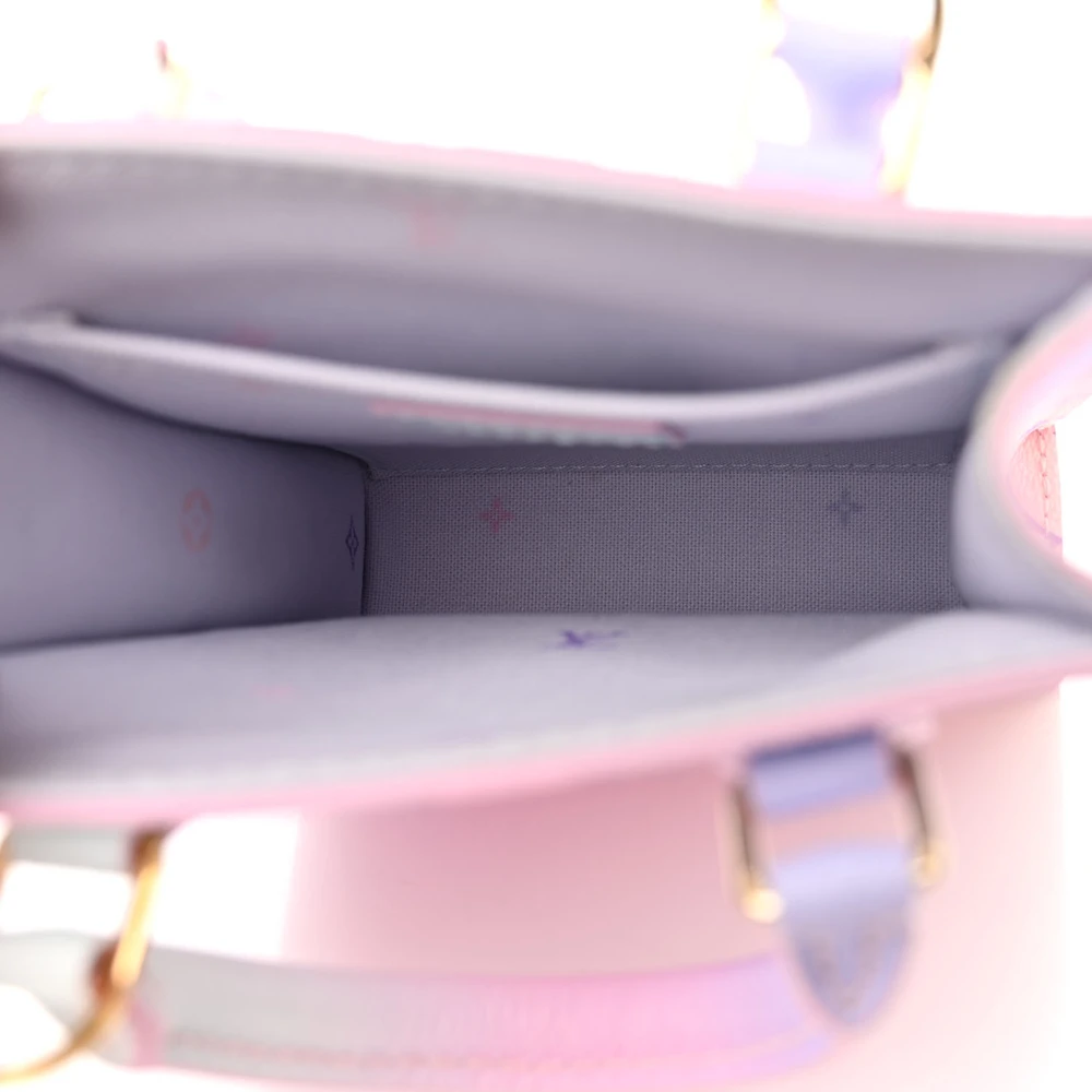 This Louis Vuitton Sunrise Pastel Giant Monogram Canvas Spring in the City Petit Sac Plat PM is a pastel-hued beauty that combines the boldness of the giant monogram canvas with soft, springtime colors. With a compact design and gold hardware, this bag is perfect for adding a pop of color and style to your wardrobe.