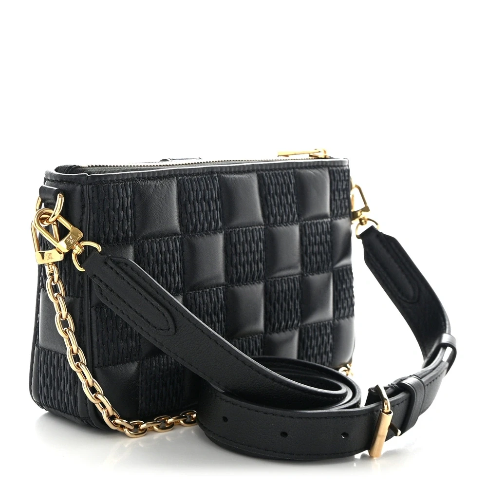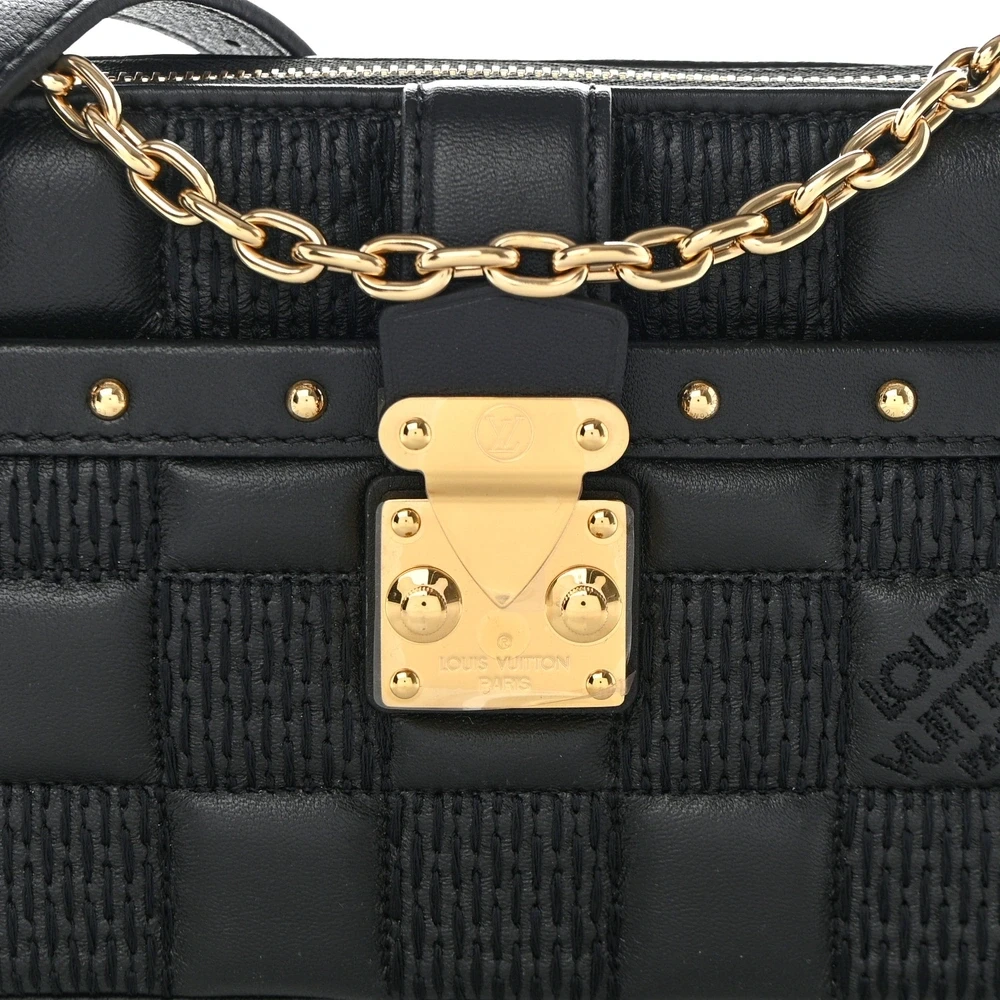 This Louis Vuitton Troca Pochette Black Damier Quilt Lambskin Leather Gold Hardware is a sophisticated and stylish pochette that exudes luxury. The Damier quilt lambskin leather offers a tactile, rich texture, while the gold hardware adds an elegant shine. The compact design makes it ideal for carrying just the essentials, and the leather strap allows for comfortable wear. A chic accessory that’s perfect for both day and night.