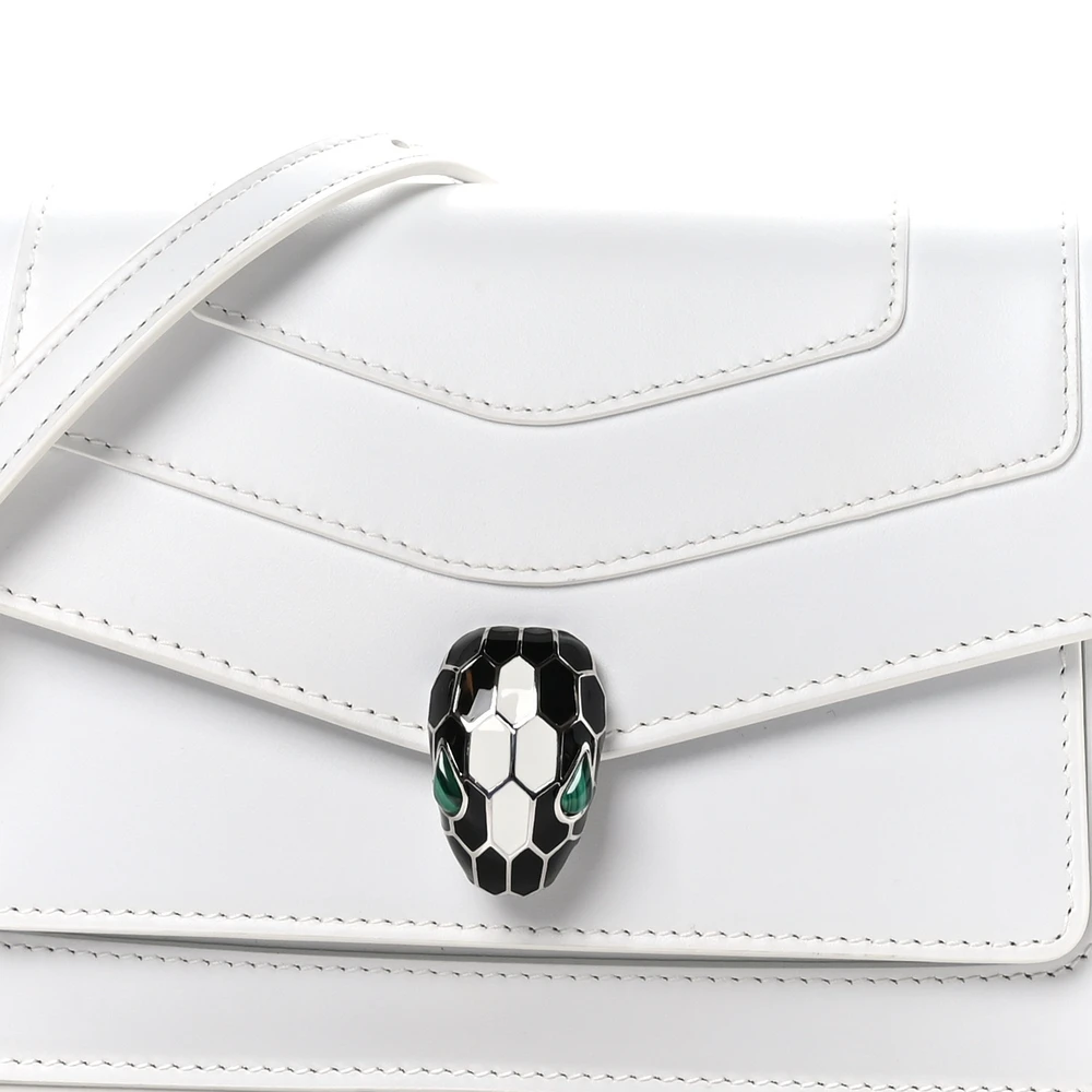 This Bvlgari Medium Serpenti Forever East West Shoulder Bag in White offers a fresh take on a classic silhouette. Made from smooth calfskin leather, it features the signature Serpenti clasp in gold hardware. The East West design provides ample space for your essentials while maintaining a sleek and refined look. The crisp white color ensures versatility, making it a perfect addition to any outfit. Experience elegance and practicality in this exquisite piece.